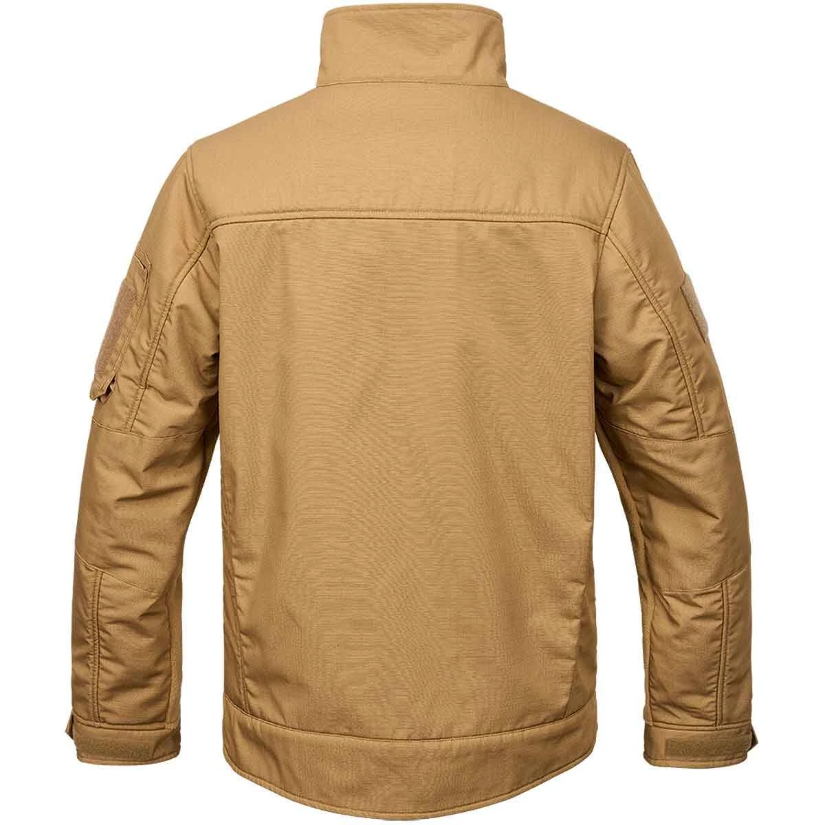 Die camelfarbene Fleecejacke Ripstop von Brandit mit verlängertem Rückenteil und regulierbaren Saum mit Kordelstopper, ist eine robuste sportliche Fleecejacke aus einem warmen und weichen Fleece-Material. Das robuste, wasserabweisende Ripstop Material hält auch stärkeren Beanspruchungen stand. Der stabile Kunststoffreißverschluss mit hinterlegter Windschutzleiste und dem Kinnschutz lassen garantiert kein kühles Lüftchen durch. Weitere praktische Details sind die 3 Außentaschen mit Reverse-Reißverschlüssen und den Zipper-Pullern für ein einfaches Öffnen und Schließen. Die Innentasche ist ebenfalls mit einem Reißverschluss ausgestattet. An den Oberarmen befinden sich 2 Klettflächen. Eine weitere Klettfläche zum Anbringen eines Namenstreifens befindet sich auf der Brust. Die Armabschlüsse sind mittels Klettverschlusses weitenregulierbar.