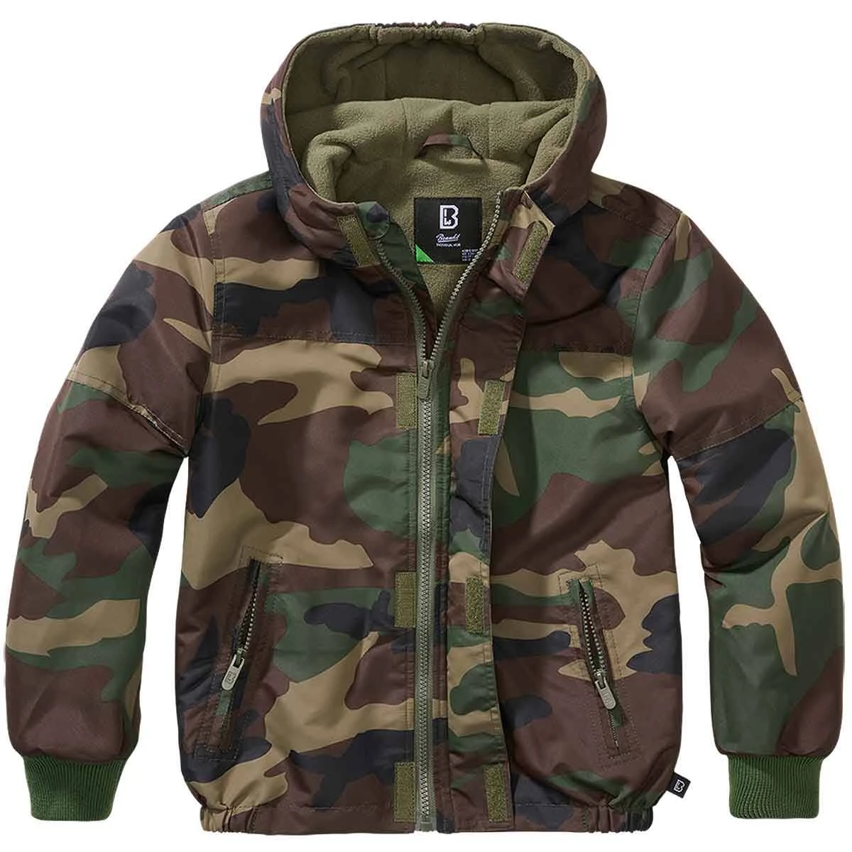 Der Kids Windbreaker mit Frontzip von Brandit besitzt ein warmes und kuscheliges Fleecefutter. Das Außenmaterial ist wind- & wasserabweisend. Der stabile Frontzipper mit Windschutzleiste und Klettverschluss, sowie die gefütterte Kapuze mit Gummizug lassen Wind und Wetter draußen. Weiterhin besitzt die Kinderjacke Armabschlüsse mit weichen, elastischen Bündchen, zwei seitliche Einschubtaschen mit Reißverschluss und eine Innentasche mit Klettverschluss. Ein wohliges Tragegefühl macht die Kinder Windjacke zum perfekten Begleiter bei nass-kaltem Wetter.