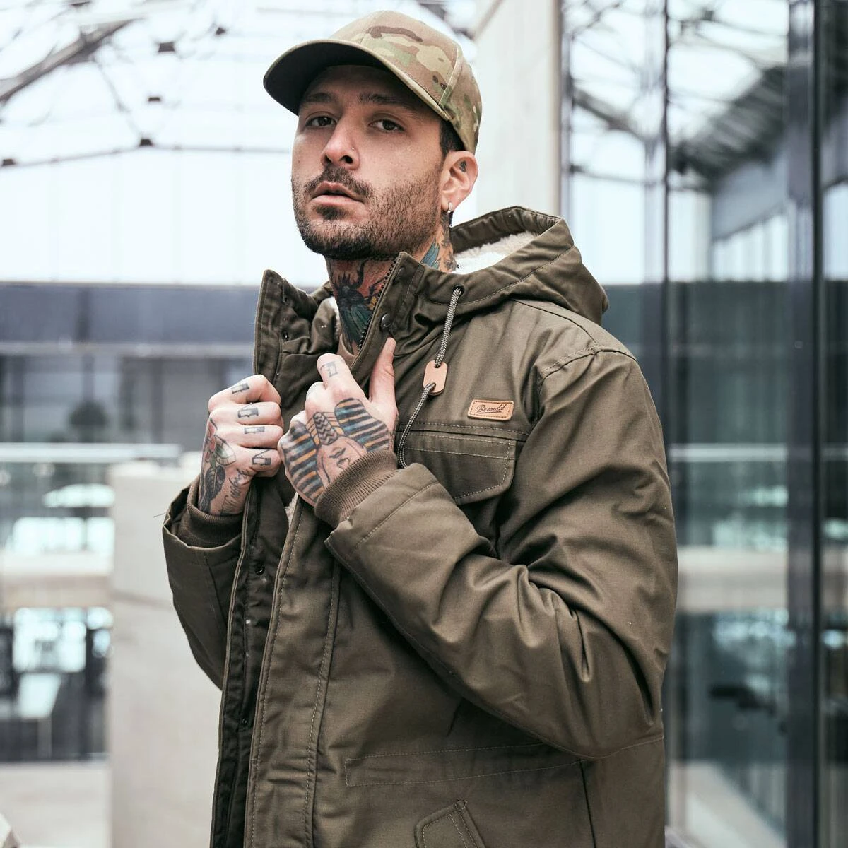 Der Brandit Marsh Lake ist ein hochwertiger Fishtail Parka im M51 Stil von Brandit. Aufgrund des gesteppten Innenfutters und des wärmenden Teddyfells ist er ideal für die kalte Jahreszeit geeignet. Er besitzt einen hochschließenden, verdeckten Reißverschluss, der durch eine Druckknopfblende geschützt wird. Auf der Innenseite gibt es Druckknöpfe mit denen man die Verlängerung auf der Rückseite hochschlagen und festmachen kann. Es gibt zwei seitliche Einschubtaschen mit Druckknopf, eine Brusttasche mit Druckknopf sowie eine Innentasche. Des Weiteren besitzt der Marsh Lake Parka einen Tunnenzug an Taille, am unteren Saum und an der Kapuze, Rippbündchen, einen Gehschlitz sowie hochwertige Lederapplikationen (z.B. ein stylisches Brandit Leder Patch über der Brusttasche).