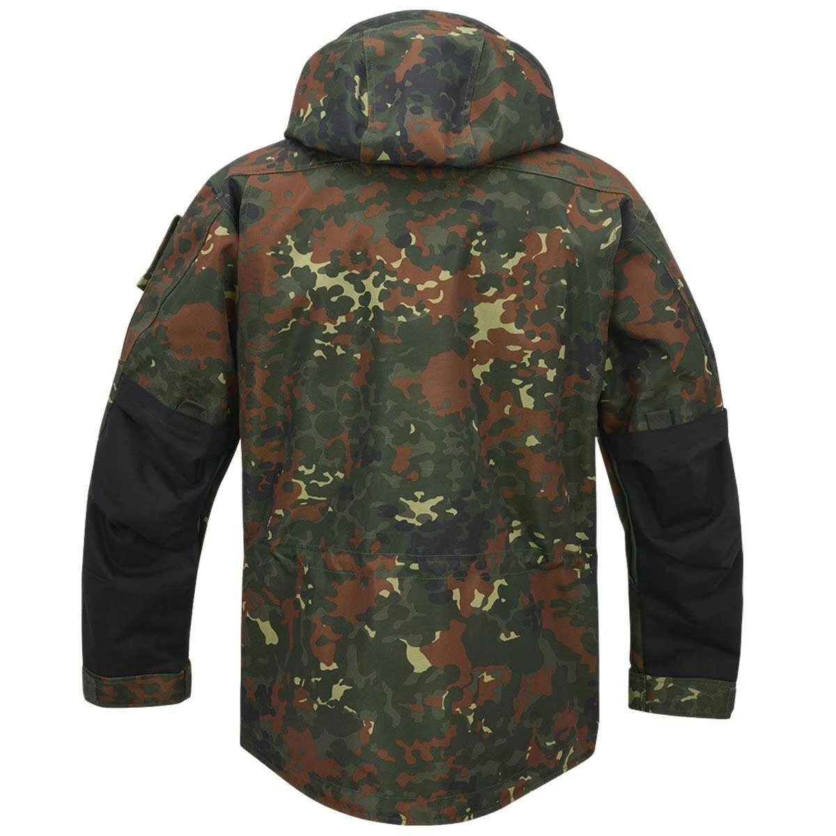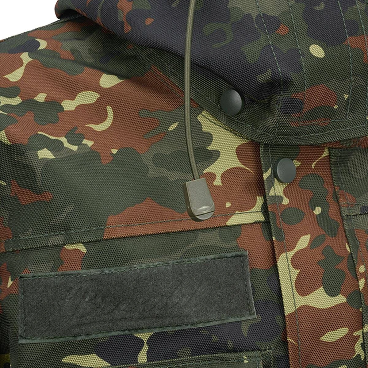 Die funktionelle, taktische Performance Outdoorjacke von Brandit ist eine robuste Allwetterjacke für das ganze Jahr. Diese Herrenjacke besitzt ein wasserabweisendes Außenmaterial aus 900D-Polyester und 500D Cordura. Der stabile 2-Wege YKK Reißverschluss ist mit einer Windschutzleiste hinterlegt. Das atmungsaktive Mesh-Innenfutter und die Ventilationsöffnungen verhindern übermäßiges Schwitzen und sorgen für eine gute Belüftung. Die dank Klettverschluss und Kordelzug einstellbare Kapuze besitzt einen zusätzlichen Schirm und lässt sich bei Bedarf mittels Reißverschlusses abtrennen. Der Ellenbogenbereich hält dank Cordura-Verstärkung auch stärkeren Beanspruchungen stand. Die Taille und der Saum sind mittels Kordelzug weitenverstellbar. Die Ärmelabschlüsse sind mittels Klettverschlusses ebenfalls weitenverstellbar. Weitere nützliche Features sind die 3 aufgesetzten Fronttaschen mit Klettverschluss und den unterlegten, zusätzlichen Reißverschlussfächern, die Molle-Bänder auf Brust und Tasche, die Armtaschen für Ellenbogen-Schützer, sowie eine Klettfläche auf Oberarm, rechter und linker Brust für das Anbringen von Patches. Die verdeckte Fronttasche, eine Unterarmtasche sowie die große Innentasche sind jeweils mit einem Reverse-Reißverschluss ausgestattet. Die Oberarmtasche passt auch für große Smartphones. Alle YKK Reißverschlüsse besitzen einen Zipper-Puller. Insgesamt eine sehr praktische Outdoorjacke mit viel Stauraum für die Aufbewahrung mitgeführter Gegenstände, Geldbörse und Handy.