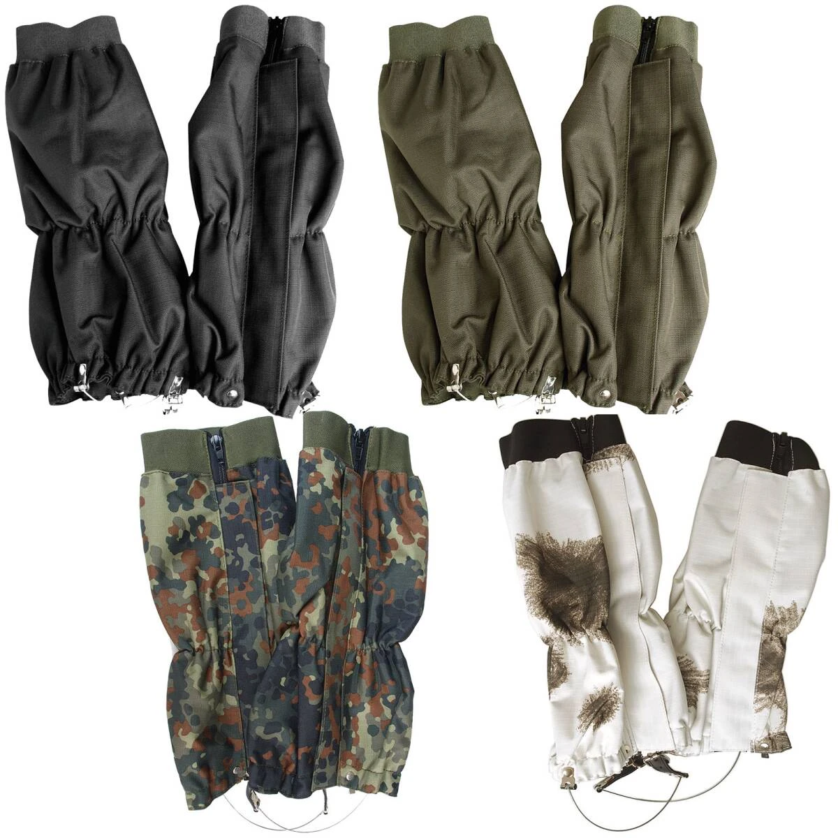 Diese wasserdichten Gamaschen aus robustem, innen beschichtetem Nylongewebe besitzen einen durchgehenden wasserdichten Frontreißverschluss mit darüberliegender Klettleiste, einen breiten Gummibund im Wadenbereich für perfekten Halt sowie zwei weitere flexible Gummizüge im unteren Bereich. Zusätzlichen Halt gibt ein individuell einstellbares Stahlseil, welches unter der Schuhsohle durchgezogen wird. Es wird durch einen 1-Dorn-Verschluss befestigt. Außerdem besitzen die komfortablen Nässeschutzgamaschen einen zusätzlichen Fixierhaken, welcher am Schnürsenkel befestigt werden kann.