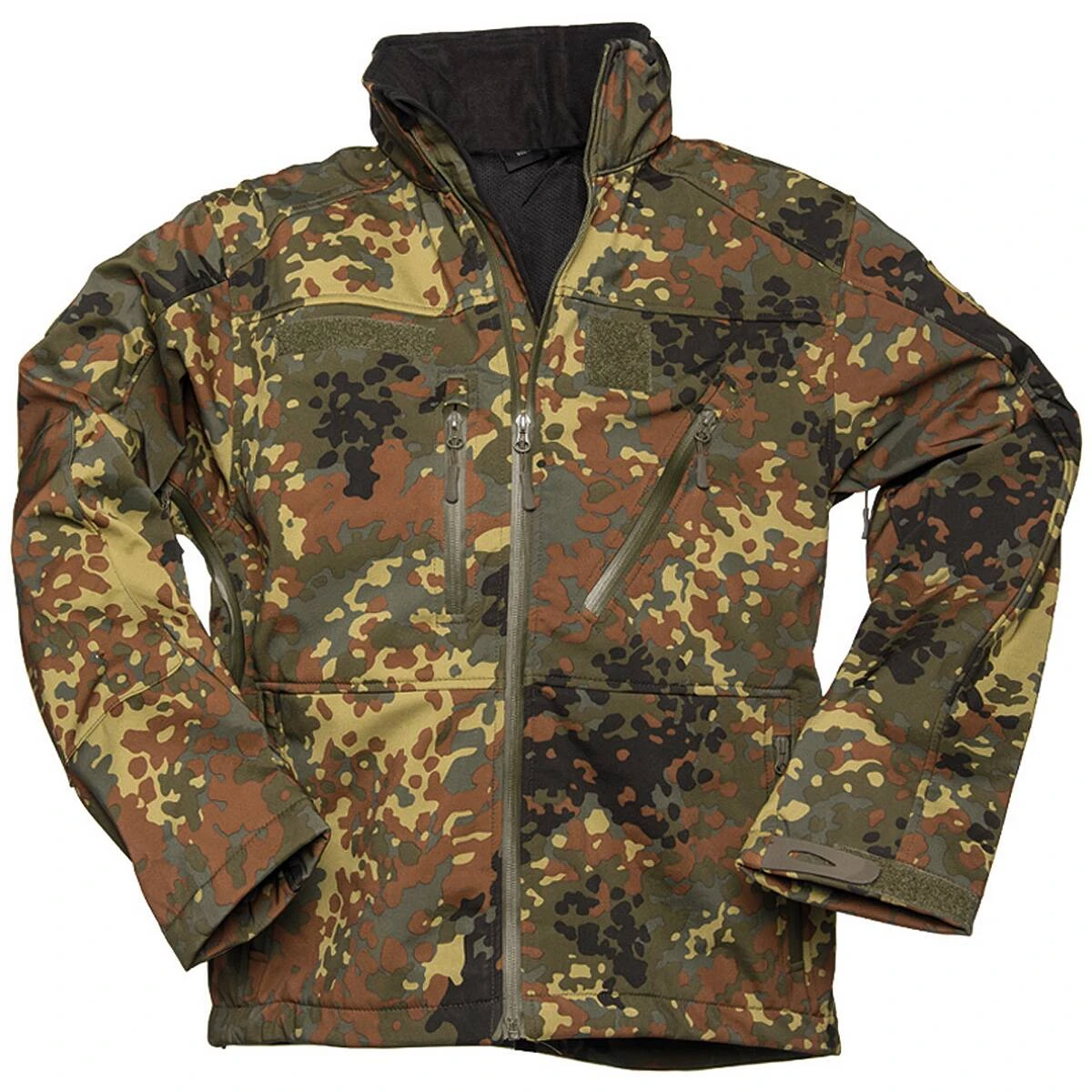Die Herren Softshell-Jacke von Mil-Tec bietet mit ihrem atmungsaktivem Drei-Lagen-Laminat einen optimalen Schutz vor Kälte, Wind und Wasser. Sie besitzt vier geräumige Außentaschen mit Reißverschluss sowie eine Innentasche mit Reißverschluss. Die große, im Kragen verstaubare Kapuze, die luftundurchlässigen Reißverschlüsse außen sowie der hinter dem Frontreißverschluss befindliche Windschutz sorgen für einen perfekten Schutz vor Wind und Wetter. Durch den regulierbaren Saumzug sowie durch die mittels Klett verstellbaren Ärmel ist eine bestmögliche Passform der hochwertigen Jacke gewährleistet. An den diversen Klettaufnahmen lassen sich Patches oder Abzeichen anbringen. Des Weiteren gibt es Lüftungs-Reißverschlüsse im Achselbereich sowie einen verstärkten Ellenbogenbereich.